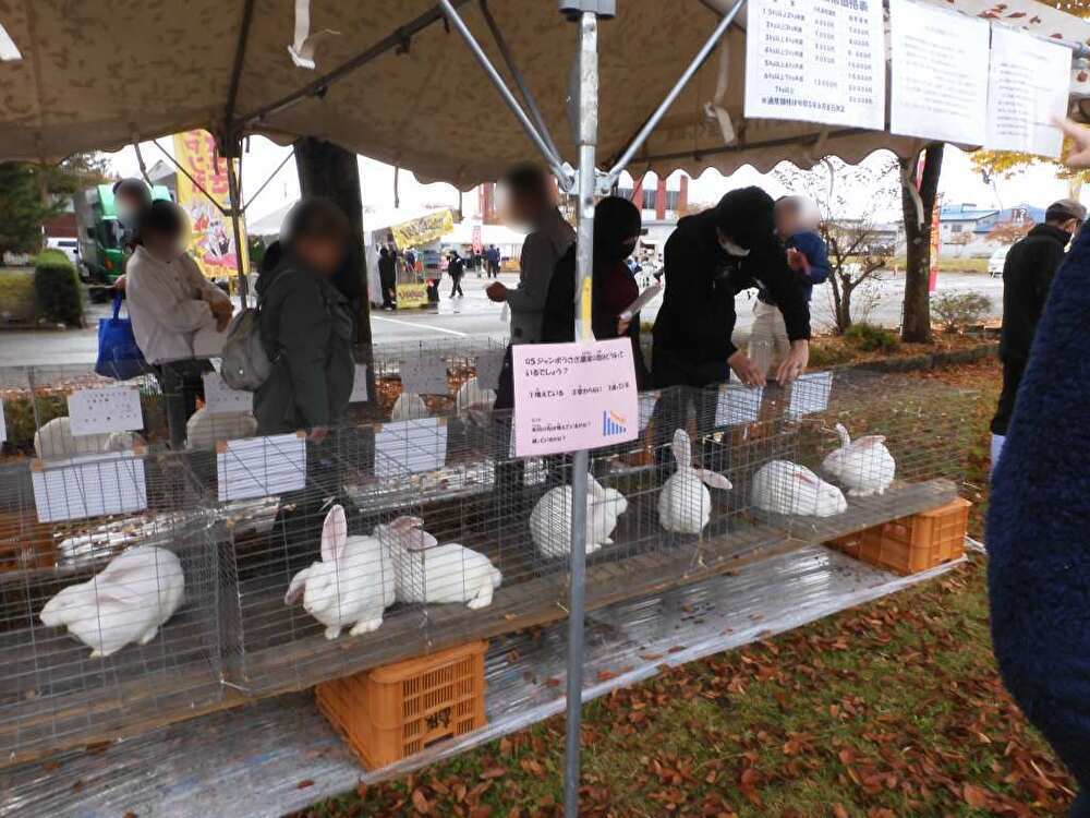 「ジャンボうさぎ」とは、食用として改良された大型品種で、その堂々とした姿と愛らしい表情が魅力。最大の特徴は、体重が一般的なウサギの数倍にあたる8kg以上にもなることです。毎年多くの来場者でにぎわい、大きさや毛並みを競い合う品評会が行われます。